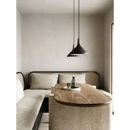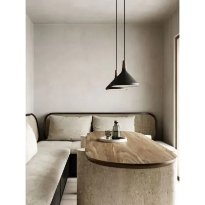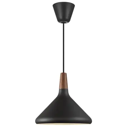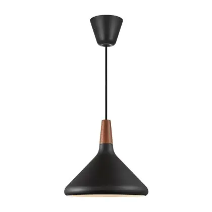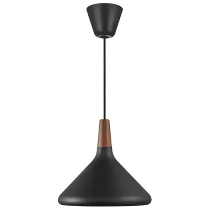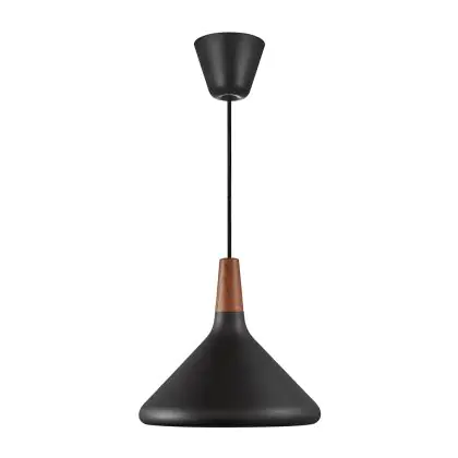 Die Nordlux Pendelleuchte aus der Modellreihe Nori zeichnet sich durch ein modernes Design und einen schicken Materialmix aus. Der Lampenschirm besteht aus Metall. Das Markenzeichen der Modellserie ist die Holzspitze in geöltem Nussbaum. Hinweis: Die Leuchte kommt ohne Leuchtmittel daher - passende E27 LED-Lampen finden Sie jedoch in unserem Shop.