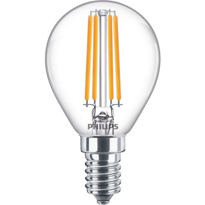 Die Philips Corepro LED Lustre E14 Kugel Fadenlampe Klar 6.5W 806lm - 827 Extra Warmweiß | Ersatz für 60W ist eine effiziente E14 LED-Lampe mit Retrodesign und der perfekte Ersatz für Ihre konventionellen 60W Lampen mit E14. Zudem strahlt sie Licht in der Farbtemperatur 2700K - Extra Warmweiß aus und punktet durch eine lange Lebensdauer.